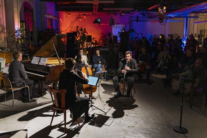 zeitgenössische Musik und Auseinandersetzung mit gesellschaftsrelevanten Themen. Aufführung eigener Kompositionen, freie Improvisation sowie Integration szenischer und interdisziplinärer Elemente.