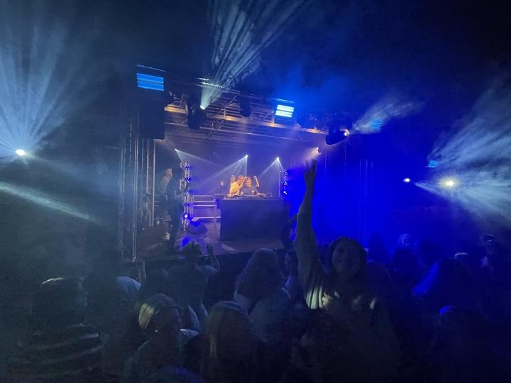 Bühnensequenz mit DJ Duo T1MELESS und feiernder Menge sowie Lichteffekten
