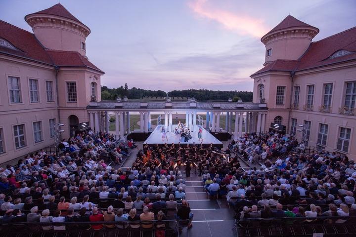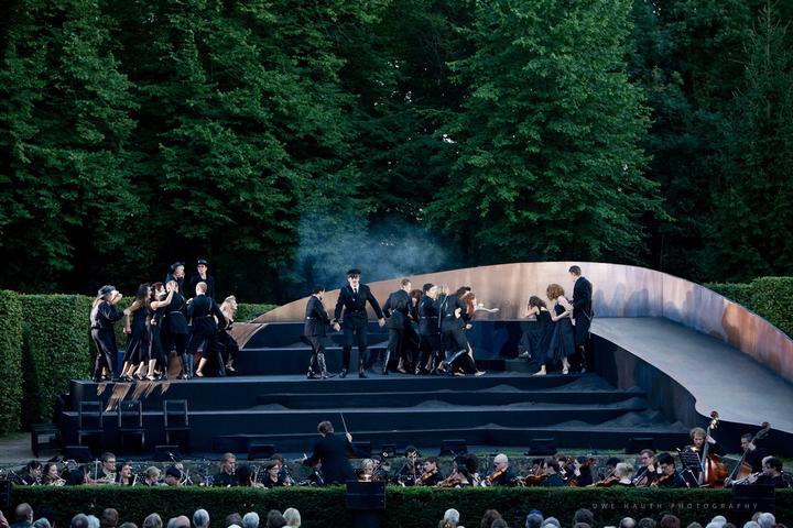 Der Schlosshof – die beliebte Spielstätte – Szene aus „Così fan tutte“, Juli 2018