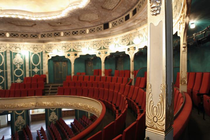 Der Max-Littmann-Saal im Regentenbau wurde als Konzertsaal konzipiert: Die Wände, der dreiseitige Balkon und die Säulen des 36 Meter langen und 16 Meter hohen Saales sind mit Kirschbaumholz verkleidet.