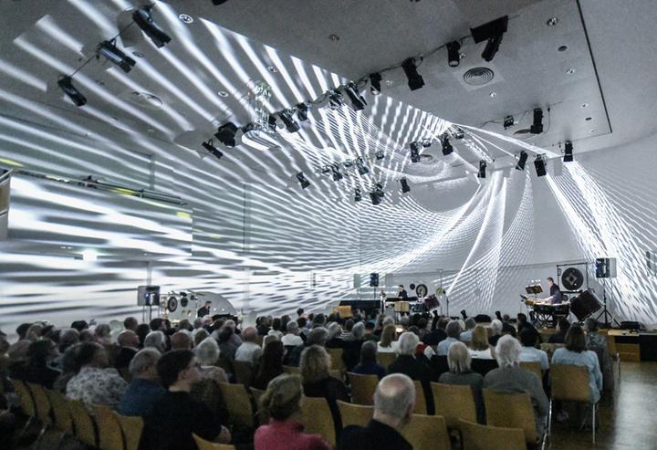 Charakteristisch für die Konzerte im Stadthaus Ulm ist die Einbeziehung der gesamten Architektur als Konzertrahmen.