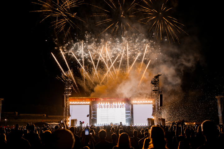 Feuerwerk an der Main Stage bei Nacht