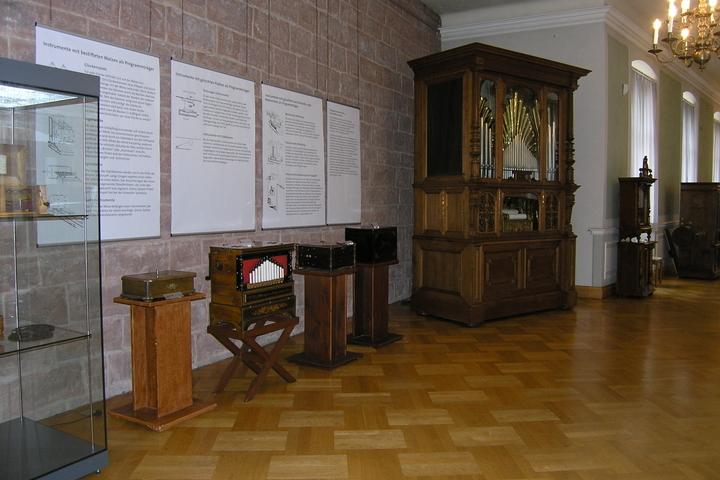 Mechanische Musikinstrumente (Drehorgeln, Spieluhren, Orchestrion, automatische Klaviere, Grammophone); Stand- und Brettuhren seit dem 18. Jh; Hörstation zum Klang der Instrumente.