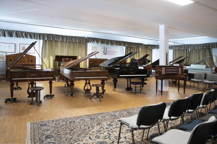 Ausstellung historischer Schiedmayer Tasteninstrumente mit den Abteilungen Fortepiano, Harmonium/Celesta und selbstspielende Instrumente.