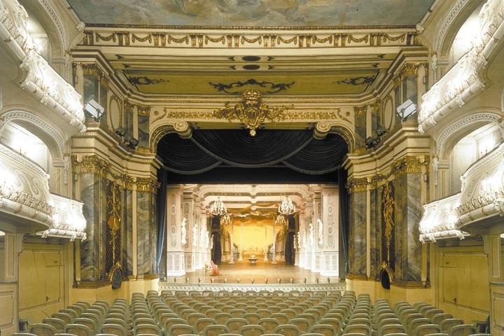 Das Schwetzinger Schlosstheater wurde 1752-53 von Nicolas de Pigage erbaut. Es ist vermutlich das älteste erhaltene Rangtheater weltweit.