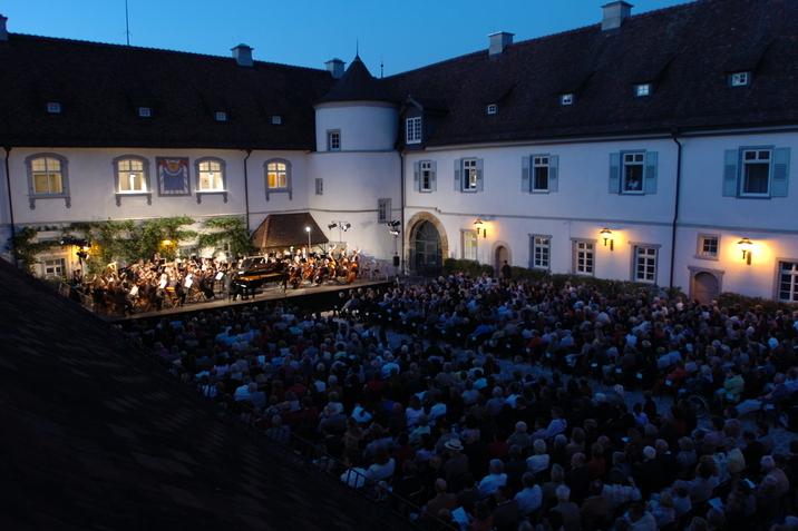 Konzertsaal unter freiem Himmel: der Innenhof von Schloss Filseck. Vor dieser Kulisse findet das Sommerfestival mit rund 10 Veranstaltungen von Klassik bis Jazz statt.