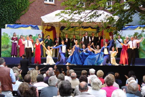 Das Schlußbild der Revue "Wiener Blut" der Lübecker Sommeroperette: Die Veranstaltungen finden an verschiedenen historischen Aufführungsorten, teilweise auch "Open Air", statt.