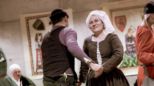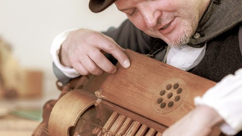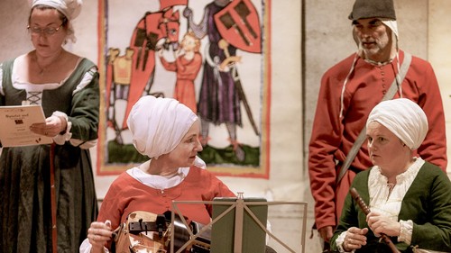 Begleitet von Musik zeitgenössischer Instrumente tauchen wir in historischer Gewandung ein in die musikalische Welt des Hoch- und Spätmittelalters.