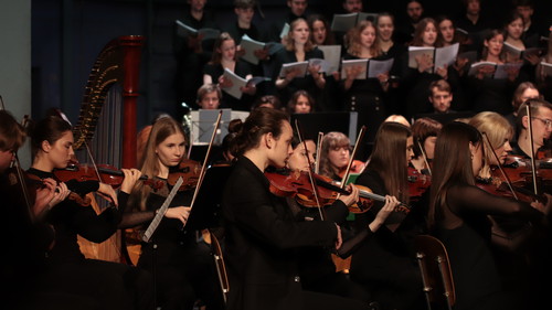 Chor und Orchester der Deutsch-Skandinavischen Musikwoche: junge Musizierende beim Konzert