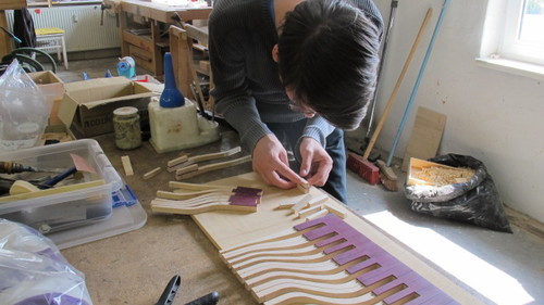 Ich bereite die Teile vor, so das die Teilnehmer sie einfach zusammensetzen können und sich auf die klangrelevanten und für das Spielgefühl wesentlichen Arbeiten konzentrieren können. Ich habe mich entschlossen, keine „Bausätze“ im klassischen Sinne anzubieten. Nur in einem Kurs mit Anleitung kann ich sicherstellen, das das qualitative Niveau der Instrumente so hoch ist, das sie auch professionell nutzbar sind.