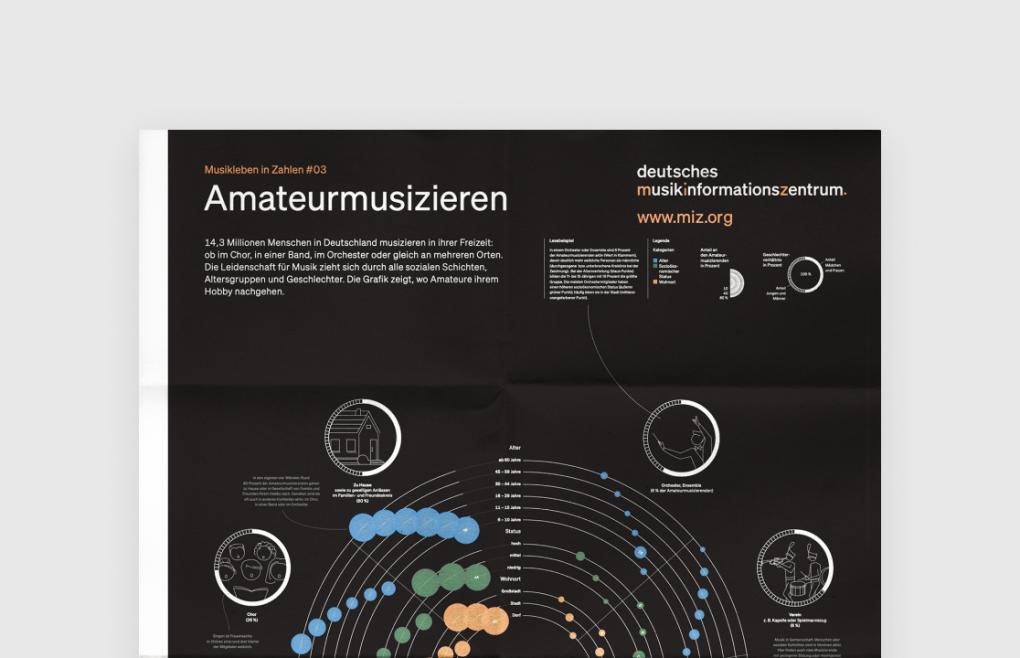 Die Vielfalt der Gelegenheiten fasst die Infografik „Amateurmusizieren“ in zentralen Kategorien zusammen und beschreibt die große Gruppe der Freizeitmusizierenden demografisch: Wie alt sind sie, welchen Bildungshintergrund haben sie, und wo sind sie zu Hause? Die Daten basieren auf einer bevölkerungsrepräsentativen Befragung, deren Ergebnisse das Deutsche Musikinformationszentrum im März 2021 in der Studie „Amateurmusizieren in Deutschland“ veröffentlicht hat.